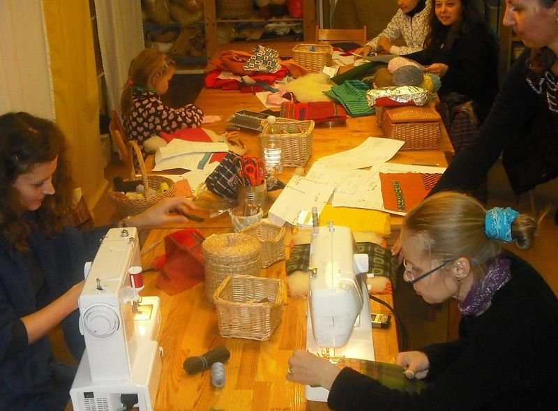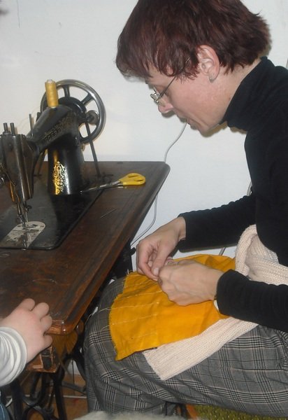 Šitie bolo v sobotu popoludní, a zišlo sa nás tam pár prváckych mamičiek, a dokonca aj jedna pani ktorá má dcérku v inej škole. Hneď prvá úloha bola pre mňa výzvou: nakombinovať látky na peračník, tak, aby to bolo pekné a ešte sa aj trafiť do vkusu môjho syna… Čo sa týka samotného šitia, na stroji síce ako – tak šiť viem, ale asi som v živote nešila nič komplikovanejšie :) Ale pod vedením pani učiteľky Tatiany sa mi to nakoniec podarilo.