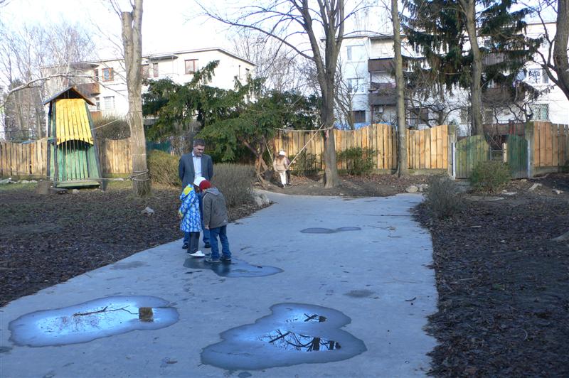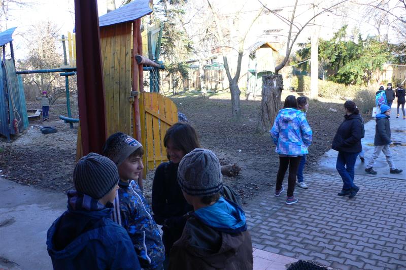 Ak je pekne, žiaci sú na prednom dvore. Tu si nájdu tiež svoje miestečko, či obľúbenú aktivitu. Využívajú ihrisko, alebo aj pomáhajú pri zametaní. Tí, čo sa neboja zimy odpratávajú aj sneh.