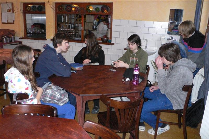 Ak je zlé počasie, tak je ranný klub v jedálni. Žiaci ale radi využívajú lavičky na chodbe, či schody. Každý z nich má svoj obľúbený priestor, či dokonca stôl v jedálni.