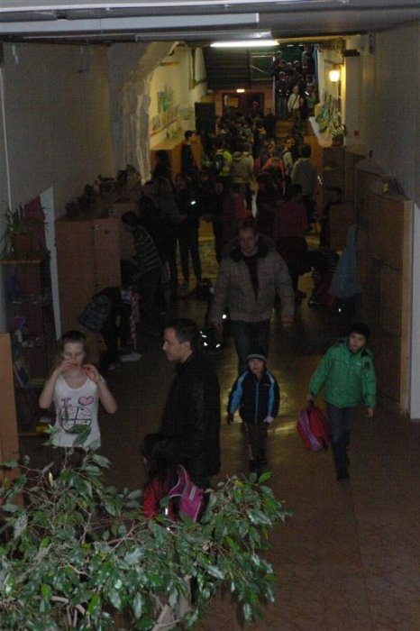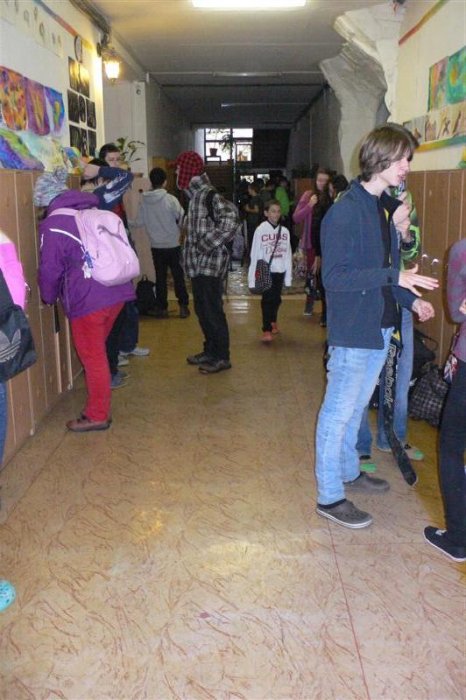 Blíži sa čas, keď učiteľ čo má ranný klub, odvedie deti k triedam. Nervozita stúpa. Kto si skôr ukoristí lavičku na hornej chodbe, aby si ju dal pred triedu a