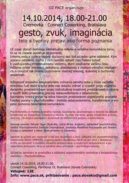 Seminár je určený pre verejnosť a tiež pre záujemcov o nový Základný rok psychofonetického vzdelávania ŠKOLY EMPATIE, organizovaného Akadémiou PACE od jari 2015 v Bratislave. Príďte sa zoznámiť s metódou hlbokého sebapoznania a moderným terapeutickým a poradenským prístupom, ktorý si odvážne dáva prívlastok – psychológia slobody.