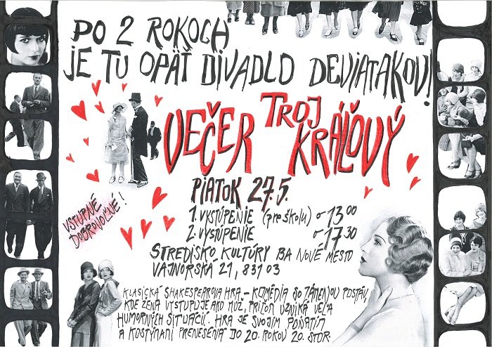 Milí priatelia, rodičia a absolventi, pozývame vás opäť na deviatacké záverečné divadelné predstavenie Večer trojkráľový od W. Shakespearea.