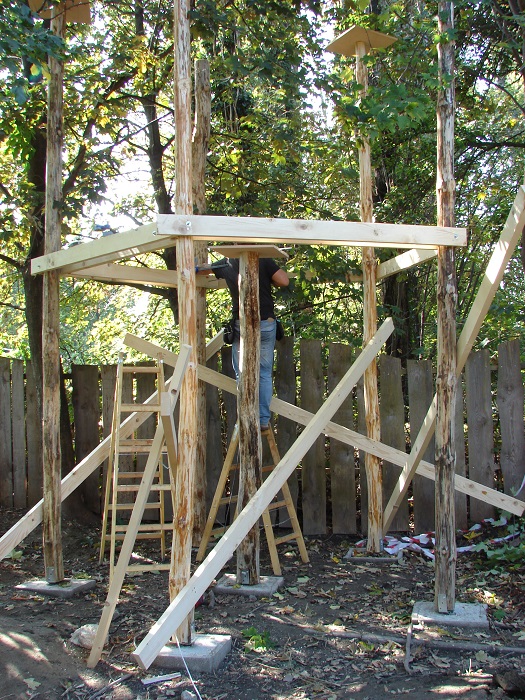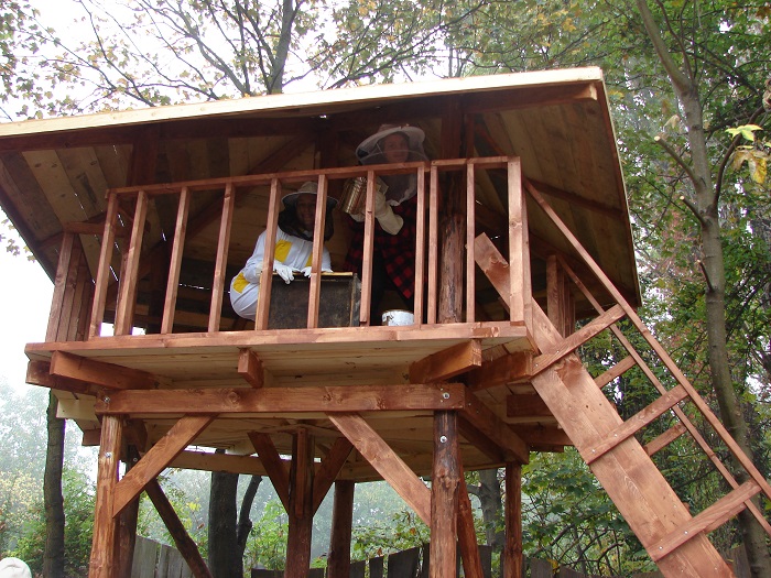 s plošinou vo výške cca 3 metre nad zemou, na ktorej budú včelstvá